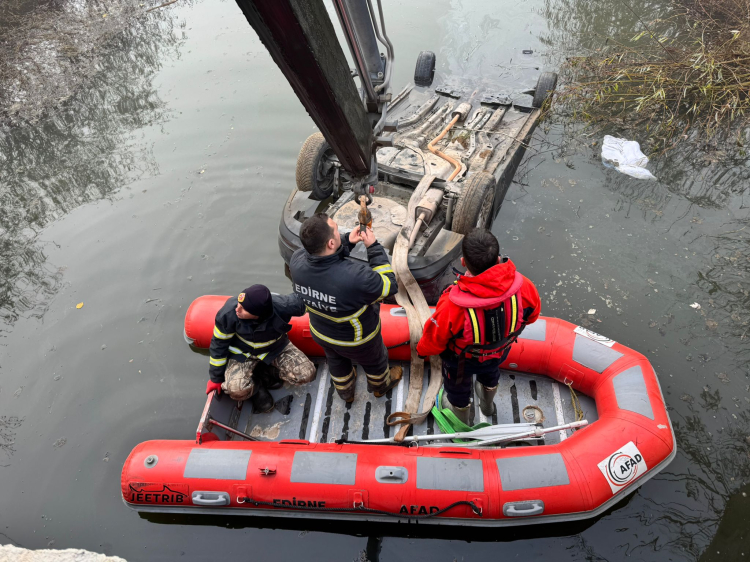 Edirne’nin Üyüklütatar köyünde bir otomobil dereye uçtu. Otomobilin dereye uçtuğunu görenler 112 Acil Çağrı Merkezine ihbarda bulundu.