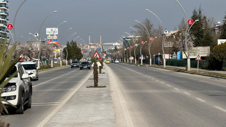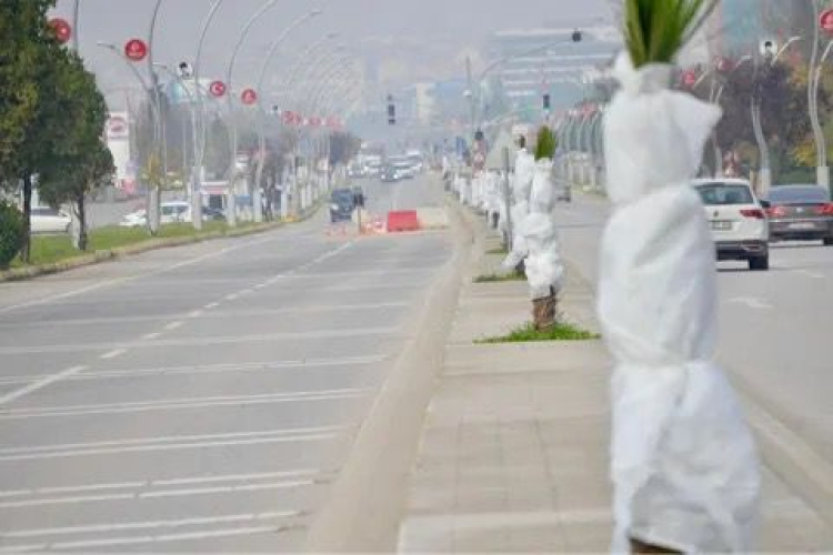 Edirne Belediyesi Park ve Bahçeler Müdürlüğü ekipleri, Atatürk Bulvarı üzerindeki orta refüjde bulunan palmiye ağaçlarını, kış şartlarında donma riskine karşı tüllerle çevreleyerek koruma altına almıştı.