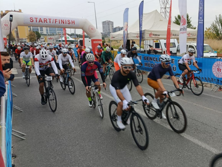 Olin kavşağı yanında kurulan başlangıç noktasında verilen işaretle pedallarını döndürmeye başlayan yarışmacılar, 70 kilometrelik parkurda ter döktü.