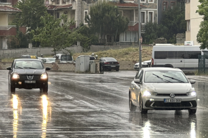 Yağış nedeniyle yer yer su birikintileri oluştu. Polis ekipleri de sürücüleri dikkatli olmaları yönünde uyardı.