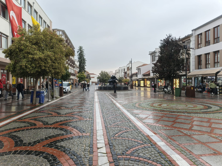 Kentte etkili olan yağışa vatandaşlar, trafiğe kapalı Saraçlar Caddesi'nde yakalanırken; tedbirli olan bazı vatandaşlar yağmurdan korunmak için şemsiyelerine sarıldı.