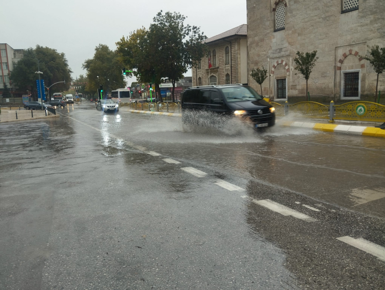 Edirne’de dün başlayan sağanak yağış zaman zaman etkisini arttırarak devam ediyor. Sağanak yağış nedeniyle yollarda oluşan su birikintileri özellikle işe giden vatandaşların yoğun olduğu sabah saatlerinde trafik akışının yavaş seyretmesine sebep oluyor.