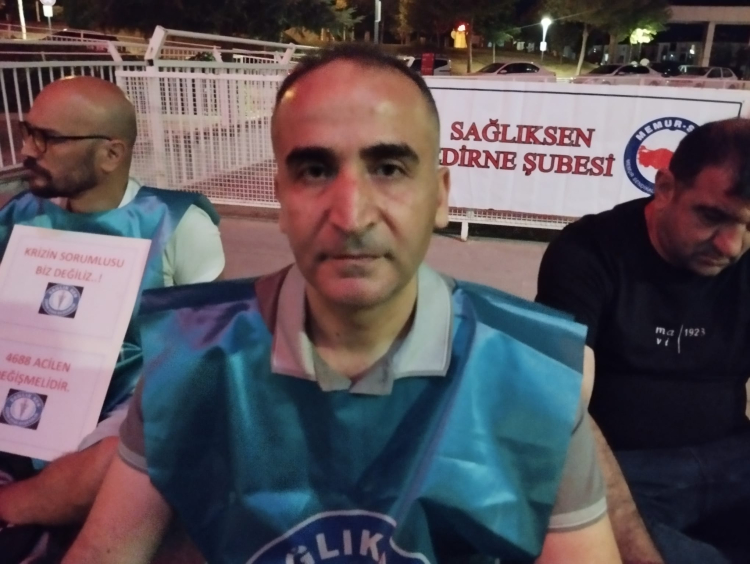 Edirne’de Sağlık-Sen üyeleri 1’inci Murat Devlet Hastanesi acil servisi önünde oturma eylemi yaptı. 8’inci Dönem Toplu Sözleşme görüşmelerinde hükümetin verdiği teklifin protesto edildiği oturma eyleminde basın açıklamasını Sağlık-Sen Edirne Şube Başkanı Erhan Turhan okudu.