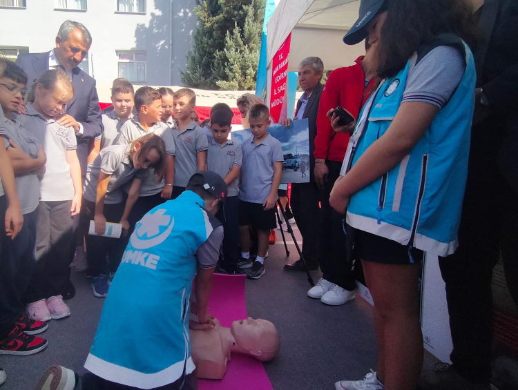 Edirne'nin 75. Yıl İlkokulu’nda gerçekleştiren programa Edirne Valisi Yunus Sezer de katıldı. İlk yardım eğitimi başta olmak üzere sağlık eğitimi verilen öğrenciler, öğrendiklerini uygulamalı olarak anlattılar. Boğulma, kanama, trafik kazası ve tüm sağlık alanlarındaki olayların uygulamalı anlatıldığı eğitimde öğrencilere sağlık bilinci kazandırıldı.