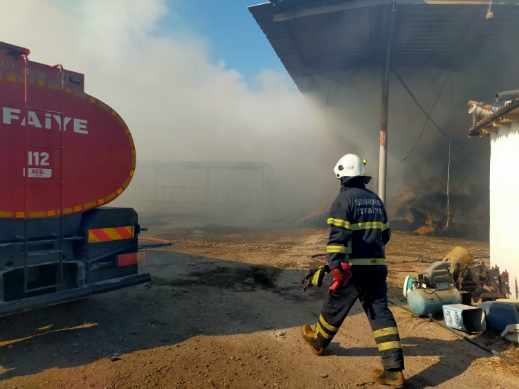 Edirne'nin İstasyon Mahallesi'nde N.M'ye ait çiftlikte henüz belirlenemeyen nedenle yangın çıktı. Alevler kısa sürede saman balyalarının ve çeltiklerin depolandığı alana ulaştı. Kısa sürede geniş alana yayılan alevler, tüm çiftliği sardı.