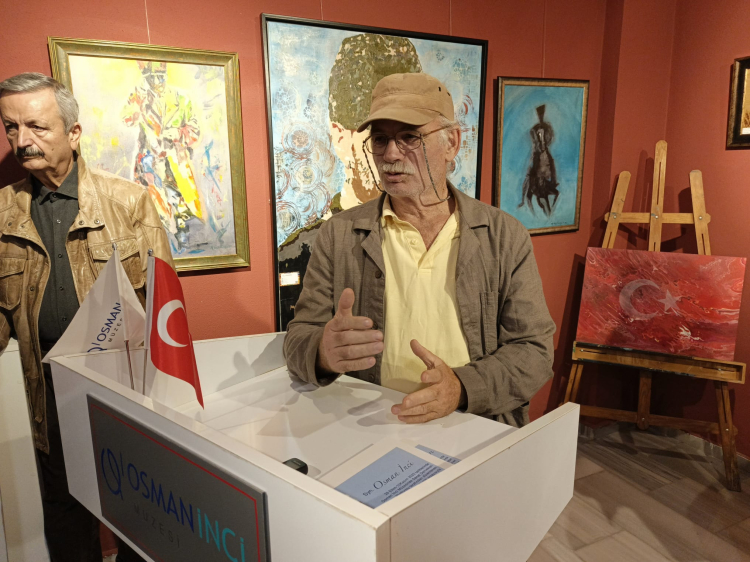 Osman İnci Müzesi kurucusu Prof. Dr. Osman İnci ise konuşmasında Cumhuriyetin önemine dikkat çekerek “Cumhuriyet; aydınlanma, hukuk, eşitlik, kadınlarımıza insan olduklarını sağlayan, hukukun üstünlüğüne dayalı bir yapılanma. Bizleri bu noktaya taşıyan yönetim Cumhuriyettir. Hepimize kutlu olsun. Eğitim, hukuk, adalet, özgürlük, eşitlik, demokrasi, insan hakları, seçme ve seçilme hakkı, egemenlik yetkisinin halkta olması, tüm yurttaşların eşit haklara sahip olması, yasalar karşısında herkesin eşit olması, yönetimde ayrıcalık olmaması, hukuk kurallarının tüm kuralların üstünde olması, yaşam hakkı, temel insan haklarının güvence altına alınması, kişi-devlet ilişkilerinde yasaların hakim olması, ülkemizin kadınlarının güçlenmesine katkı, sanat ve kültürün desteklenmesi; Cumhuriyetin kuruluşundan bu güne geçen sürede çok yol aldık. Yüzde 96’sı okur yazar olmayan bir toplumdan bu günlere geldik. Kız ve erkek öğrencilerin ayrı ayrı eğitim aldığı okullardan karma eğitime geçerek bilginin üstünlüğünü sağladık. Bugünkü sergide ilk görüşte dikkatimi çeken, Mustafa Kemal Atatürk’ün kendisinin veyahut eserlerinin resmedilmesinden büyük bir gurur duyuyorum. Umutsuzluk asla söz konusu değil; Cumhuriyetin kuruluş koşullarını anımsamak zorundasınız. O koşullarda kurulan bir Cumhuriyet, bu koşullarda geleceğe yürüyecektir. Kimsenin kaygısı olmasın” sözlerine yer verdi.