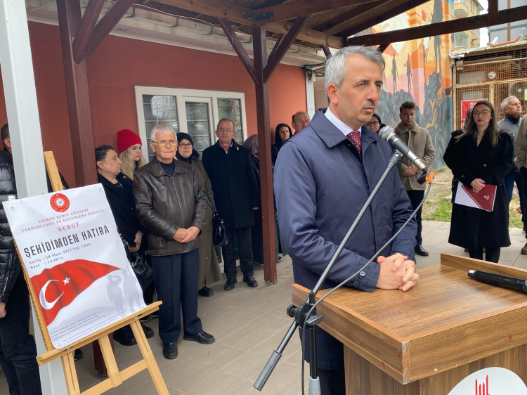 Edirne Belediye Başkan Yardımcısı Cenk Ergüden ise “Bugün burada aziz şehitlerimizin hatırasını yaşatmak ve onların bizlere emanet etmiş olduğu değerleri yaşatmak için toplanmış bulunuyoruz. Bu anlamlı sergi yalnızca bir saha etkinliği değil, aynı zamanda tarihimize, kahramanlarımızın hatıralarına duyduğumuz vefanın bir göstergesidir. Aziz şehitlerimizin bizlere emanetleri olan siz değerli ailelilerimiz her zaman baş tacımız olacaksınız. Şehitlerimize rahmet, minnet ve saygıyla anıyor onların emaneti olan bu cennet vatanı sonsuza dek koruyacağımıza bir kez daha söz veriyoruz” diye konuştu.