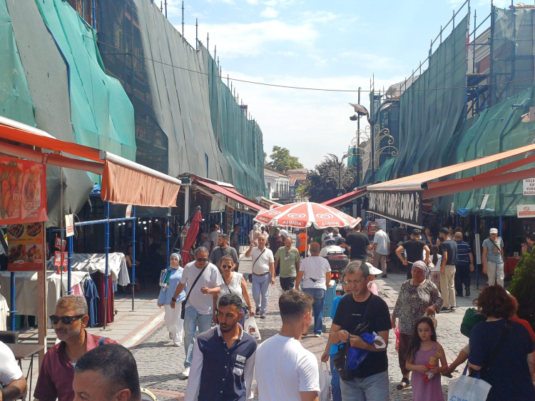 Edirne'nin tarihi ve alışveriş açısından önemli bölgesi Saraçlar Caddesi, bugün serin havanın etkisini yaşadı.