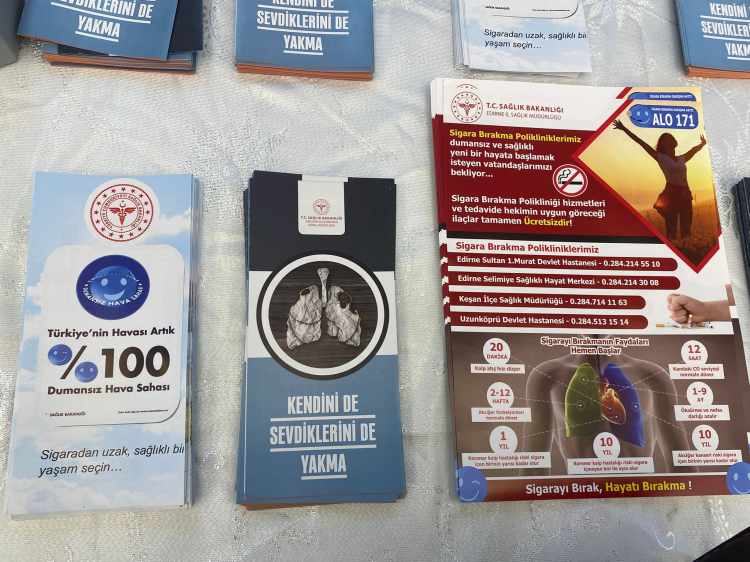 Edirne İl Sağlık Müdürlüğü, sigaranın zararlarına dikkat çekmek ve sigara bırakmak isteyenlere destek olmak amacıyla 9 Şubat Dünya Sigara Bırakma Günü’nde bir alışveriş merkezinde bilgilendirme standı kurdu. Gün boyu devam eden etkinlikte, uzmanlar vatandaşlarla birebir görüşerek sigaranın sağlık üzerindeki olumsuz etkileri hakkında bilgi verdi. Standı ziyaret eden vatandaşlara sigaranın yol açtığı hastalıklar konusunda bilgilendirme yapılırken, sigarayı bırakmayı düşünenlere rehberlik edecek broşürler de dağıtıldı.