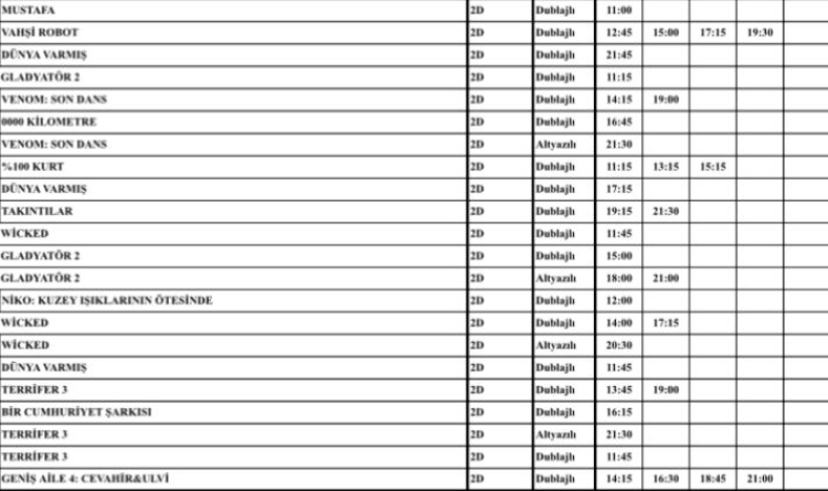 İşte, 22 - 28 Kasım 2024 tarihleri arasında gösterimde olacak film listesi: