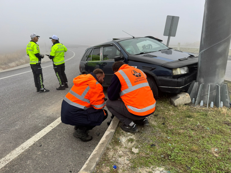 Kırklareli’nden Edirne istikametine seyir halinde olan M. T.’nin kullandığı 22 AEA 2** plakalı otomobil, sürücüsünün virajı alamaması nedeniyle önce refüje ardından da yön tabelasına çarptı.