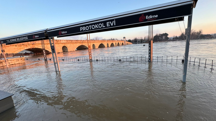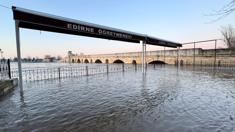 Meriç Nehri’nin taşması sonucu, nehir kıyısında yer alan Protokol Evi ve Edirne Öğretmenevine ait dış mekanlar tamamen sular altında kaldı.