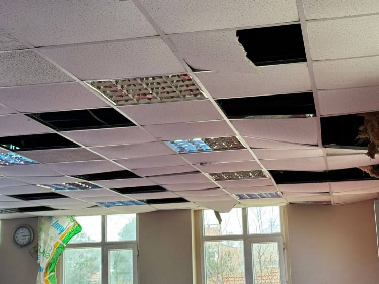 Asma tavan panellerinin yer yer çöktüğü ve parçaların öğrencilerin vücuduna isabet ettiği öğrenildi. Spor yapmak için salona gelen çocuklar, her an üzerlerine bir şey düşeceği korkusuyla antrenman yapmaya çalışıyor.