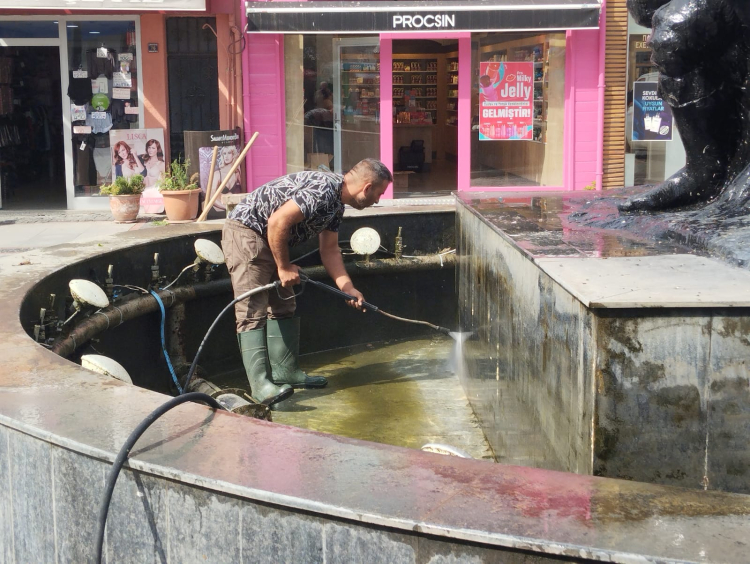 Edirne’de bulunan süs havuzları, Edirne Belediyesi görevlileri tarafından temizleniyor. Dün başlayan temizlik çalışmalarında önce Uğur Mumcu Parkı’nda bulunan havuzun temizliği tamamlandı. Bugün de çalışmalarını sürdüren belediye görevlileri, Saraçlar Caddesi’nde bulunan havuzları temizlediler.