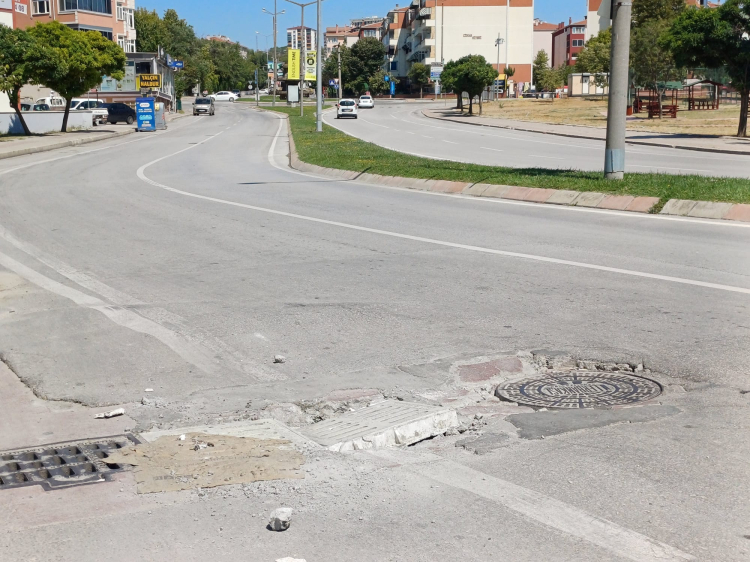 Edirne’de, 15 Temmuz Demokrasi ve Cumhuriyet Parkı’nın hemen alt kısmında bulunan İlhami Ertem Caddesi üzerinde yer alan bir mazgal tehlike oluşturuyor. Yolun hasar görmesiyle birlikte kırılan mazgal ızgarası yerinden çıkmış durumda.