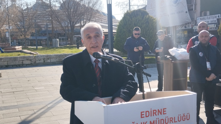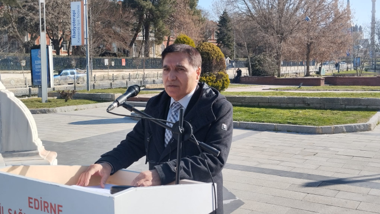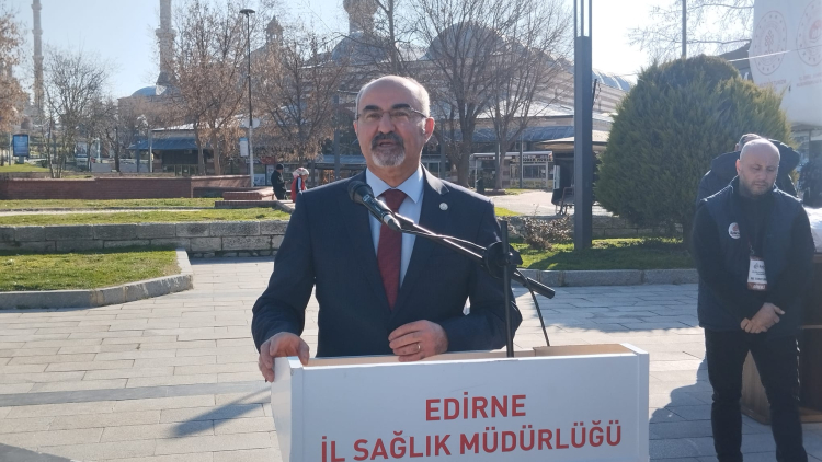 Saygı duruşu ve İstiklal marşının okunması ardından konuşan Edirne İl Sağlık Müdür Vekili Op. Dr. Ali Kaya, 14 Mart gününün tarihine dikkat çekerek “Bugün insan hayatını her şeyin üzerinde tutan, bilgiyle, vicdanla ve büyük bir özveriyle görev yapan sağlık çalışanlarımızın günü olan 14 Mart Tıp Bayramı'nı kutlamak için bir aradayız. 14 Mart 1827 ülkemizde modern tıp eğitiminin başladığı gün olarak kabul edilir. Ancak bayramın bugünkü anlamını kazanması, 1919 yılında İstanbul'un işgali sırasında, Hikmet Boran öncülüğündeki Mekteb-i Tıbbiyelilerin işgale karşı bir direniş ve bir protesto eylemi olarak bugünü kutlamasıyla başlamıştır. Bu nedenle 14 Mart Tıp Bayramı ülkemiz için sadece bir mesleki kutlama değil, aynı zamanda bir vatanseverlik sembolüdür. Mekteb-i Tıbbiyeliler 1. Dünya savaşı ve kurtuluş savaşında da ön cephelerde yer aldılar. Öyle ki 1915 girişli Mekteb-i Tıbbiyelilerin tamamı şehit oldu, bu nedenle 1921 yılında Mekteb-i Tıbbiyeyi Şahane mezun veremedi. Bu yönüyle bizlere onurlu ve gururlu bir tarih bıraktılar. Onları rahmet minnet ve saygıyla anıyoruz” dedi.