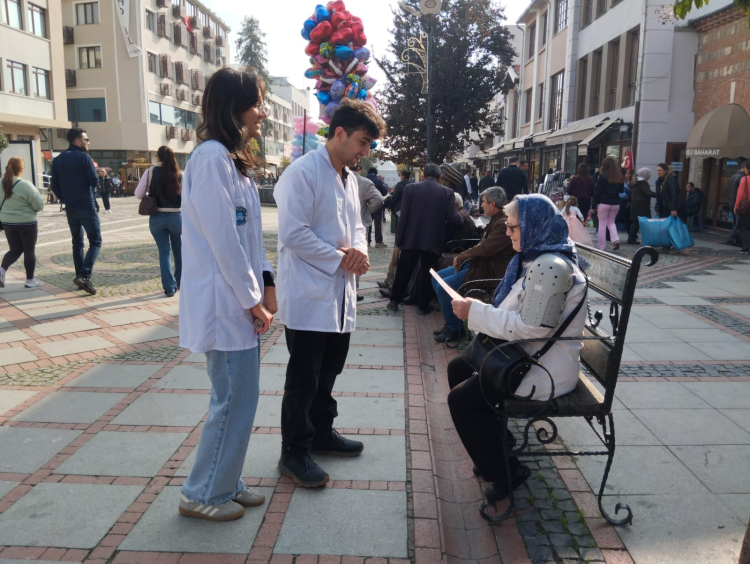 Etkinlikte organ bağışlamak isteyen vatandaşlara yapılması gerekenlerin anlatıldığını söyleyen EMSA Trakya Üniversitesi Topluluğu Başkanı, Trakya Üniversitesi Tıp Fakültesi 3’üncü sınıf öğrencisi Neslişah Hatipoğlu; “3-9 Kasım Organ Barışı Haftası olarak geçiyor. Biz de EMSA Trakya Üniversitesi olarak bir tıp fakültesi topluluğuyuz. Halkımızı bilinçlendirmek için halk sağlığı çalışma kolumuz altında broşürler getirdik. İlk önce dün bir eğitim aldık. Onun dışında şimdi halkımıza hem organ bağışı hakkında hem de farklı konular hakkında bilgilendirme çalışmaları yapıyoruz. Türkiye’de şu an yaklaşık 33 bin kişi organ bağışı bekliyor. Her yıl, hatta her gün bu sayı değişiyor. Her gün gittikçe daha fazla artmaya başladı. Bir yandan da azalıyor. Maalesef ki organ bağışı bekleyen hastalarımızın bazıları çok uzun zaman bekliyorlar. O yüzden vefat edebilenler oluyor. Onun dışında organ bağışı yapılıp iyileşen hastalarımız da oluyor. Organ bağışı gerçekten çok önemli. Çünkü bir bağış yaparak 8 kişinin hayatı kurtarılabiliyor. Organ bağışı hem aile sağlık hekimine gidip form doldurup da yapabiliyor ya da e-nabızdan da yapılabiliyor. Ama halkın kafasında ‘formu doldurdum ama şimdi ne olacak?’ gibi sorular oluyor. Aslında bunu doldurmak, kişinin bir beyanı oluyor. Yani ‘ben aslında organ bağışına sıcak bakıyorum’ gibi. Allah korusun kişi vefat ettikten sonra ailesi aslında bağış için izni alıyor. Yani kişi vefat ettikten sonra ailesi düşüncesini bilmiş oluyor. Bu konuda biz bilinçlendirme çalışmalarına devam etmek istiyoruz. Bu bilinçlenme gerçekten çok önemli, organ bağışı çok önemli. İnsanlara bırakabileceğiniz en güzel hediye diyebiliriz” dedi.
