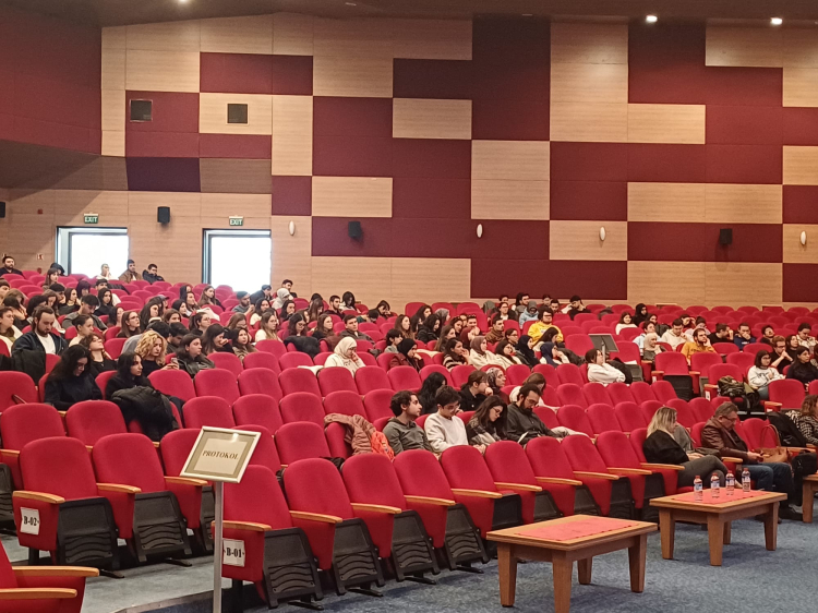 Adli Tıp Uzman Doktoru Çağdaş Meriç, görev aldığı Çocuk İzlem Merkezi (ÇİM) üzerinden mesleki profesyonelliğe yaklaşımı, öğrencilere aktardı. Adli Tıp alanında sanıldığı gibi sadece hayatını kaybetmiş kişiler ile çalışılmadığını ifade eden Meriç, özellikle çocuk istismarı olaylarında Adli Tıp alanının önemli bir rol oynadığını belirtti.