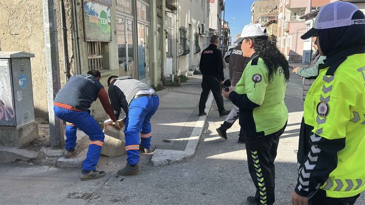 İl Emniyet Müdürlüğü Trafik Tescil ve Denetleme Şube Müdürlüğü ve Belediye Zabıta Müdürlüğü ekipleri, taşıt ve karayolu üzerindeki araç parklarında, trafik akışını ve yayaların geçişini engelleyecek şekilde konulan engellere yönelik uygulama yaptı.
