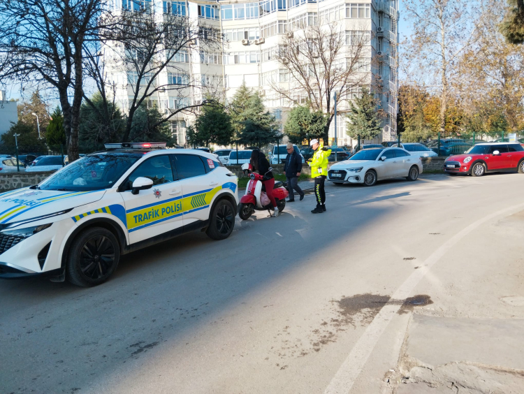 Edirne İl Emniyet Müdürlüğü’ne bağlı trafik ekipleri Trakya Birlik arkasındaki 1’inci Murat Mahallesi Bülent Alamut Caddesi’nde trafik denetimi gerçekleştirdi. Ters yöne giren araçların denetlendiği uygulamada motosiklet sürücülerinin kast denetimleri de yapıldı.