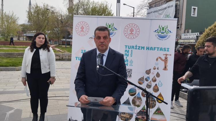 Edirne’de İl Kültür ve Turizm Müdürlüğü organizasyonunda 15-22 Nisan 2026 tarihleri arasında kutlanacak olan Turizm Haftası’nın 50’ncisi, düzenlenen açılış programıyla başladı. 25 Kasım Stadyumu’nun önünden Edirne Belediye Bandosu eşliğinde Saraçlar Caddesi yürüyüşüyle başlayan program, Atatürk Anıtına çelenk sunulması saygı duruşu ve İstiklal marşının okunmasıyla devam etti.