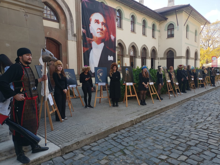 Trakya Üniversitesi Güzel Sanatlar Fakültesi’nin de olduğu tarihi tren garının girişinde düzenlenen sergide, Prof. Dr. Tilla Deniz Baykuzu danışmanlığında gerçekleştirilen deneysel tarih çalışması gösterime girdi. Tarih Bölümü öğrencileri ile birlikte Türk topluluklarının geleneksel kadın başlıkları ile tarihi başlıkların fotoğrafları sergilenirken; çalışmada görev alan öğrenciler de başlıkları giyerek canlı manken oldular.