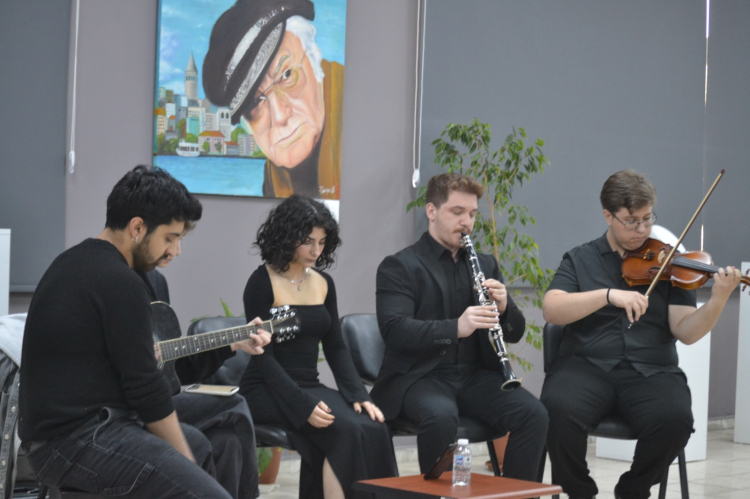 Eğitim Fakültesi Güzel Sanatlar Eğitimi Bölümü Müzik Eğitimi Anabilim Dalı öğrencilerinin müzik dinletisi ile başlayan açılış töreninde Doç. Dr. Deniz Gökduman konuşma yaptı. Gökduman, sanat ve edebiyatın büyülü dünyalarında eşsiz bir yolculuğa çıkmak için bir araya geldiklerini söylerken; “Trakya Üniversitesi Güzel Sanatlar Fakültesi ile Edebiyat Fakültesi’nin güç birliğiyle hayat bulan serginin açılışında sizlerle birlikte olmaktan büyük bir mutluluk ve onur duyuyorum. Edebiyat; kelimelerle resimler çizer, resim ise renklerle hikâyeler anlatır. Bu özel sergide, edebiyatın usta kalemleri ve resim sanatının yetenekli fırçaları bir araya gelerek, ortaya benzersiz bir buluşma çıkardı. Ahmet Arif’ten Yaşar Kemal’e, Tezer Özlü’den Attilâ İlhan’a kadar 31 seçkin edebiyatçımızın ruhu, 25 değerli sanatçımızın ellerinde yeniden hayat buldu” ifadelerini kullandı.
