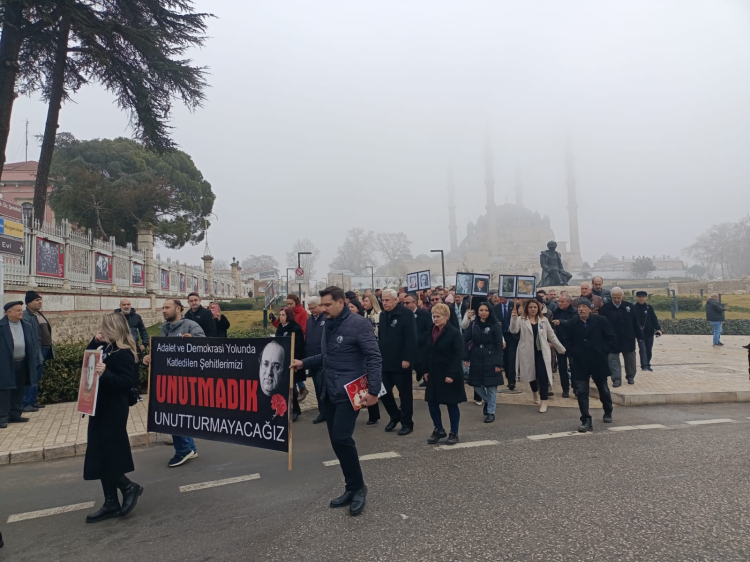 Edirne Belediyesi önünden kortej yürüyüşü ile başlayan anma töreni, Atatürk anıtına çelenk sunumu, saygı duruşu ve İstiklal Marşı’nın okunması ile devam ederken; basın açıklaması ise Uğur Mumcu anıtı önünde gerçekleştirildi.