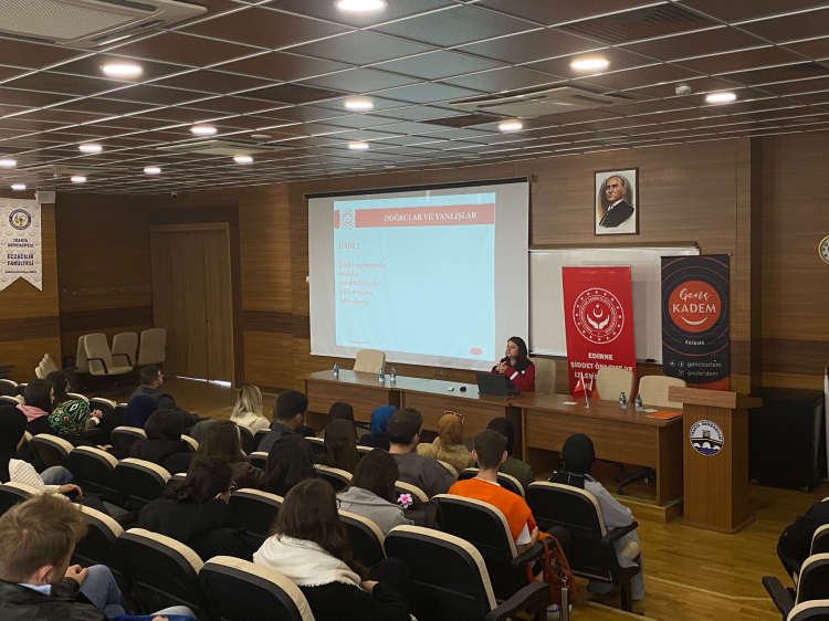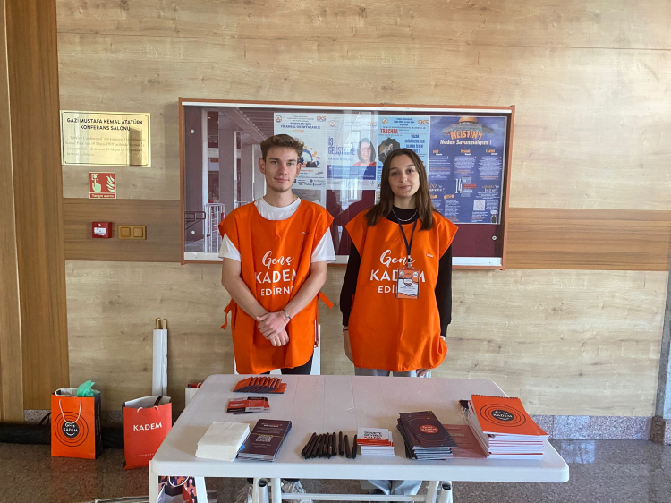 Edirne’de Trakya Üniversitesi Eczacılık Fakültesi Gazi Mustafa Kemal Atatürk Konferans Merkezi’nde Aile Sosyal Hizmetler Edirne İl Müdürlüğü Şiddet Ön İzleme Merkezi Müdürlüğü ve Genç Kadın ve Demokrasi Topluluğu işbirliği ile üniversite öğrencilerine yönelik “Kadına Yönelik Şiddetle Mücadele Farkındalık Semineri” düzenlendi. Seminer öncesi Genç Kadın ve Demokrasi Topluluğu tarafından bilgilendirme standı açılarak, topluluk hakkında öğrencilere bilgilendirme yapıldı ve broşür dağıtıldı.KADEM Topluluk Başkanı Kardelen Sarıteke, gençlerin bu tür konularda bilinçlenmesinin önemine değinerek, üniversite öğrencilerini bu mücadelede daha aktif rol almaya davet etti.
