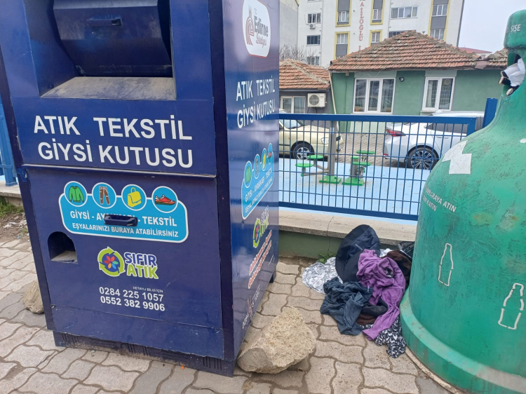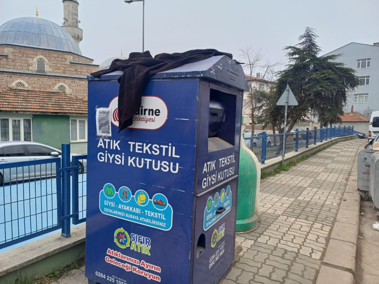 Şehrin belli yerlerinde bulunan Atık Tekstil Giysi Kutusuna vatandaşlar geri dönüşüm için giysilerini atmak yerine, giysileri kutunun üzerine ya da çevresine bir çöp gibi atıyor. Geri dönüşüm konusunda ülkece daha duyarlı olunması gereken zamanda Edirnelilerin gösterdiği bu yanlış davranış sonrası, geri dönüşüme olan duyarsız yaklaşımı yeniden sorgulattı.