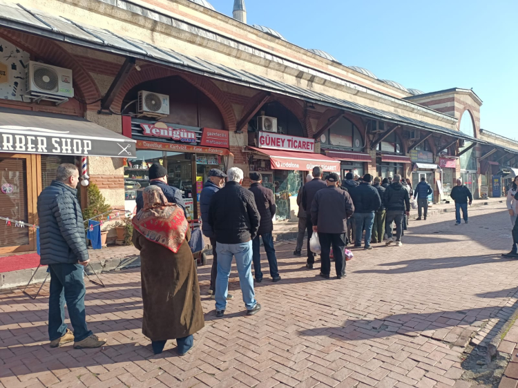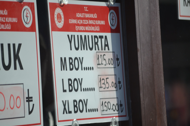Edirne’de Açık Ceza İnfaz Kurumu İşyurdu Müdürlüğü’nün tarihi Bedesten Çarşısı’nda bulunan satış mağazasında bugün saat 11.00’den itibaren uygun fiyata yumurtanın satışa sunulduğunu öğrenen vatandaşlar kuyruk oluşturdular.