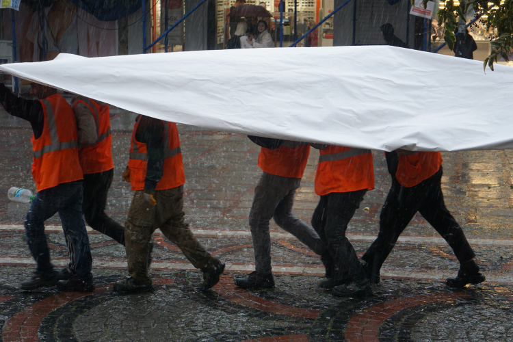 Bir iş merkezinin önünde mahsur kalan vatandaşların imdadına yine başka bir vatandaş yetişti.
