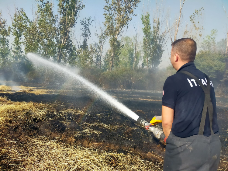 Yangın, diğer tarlalara sıçramadan söndürüldü.