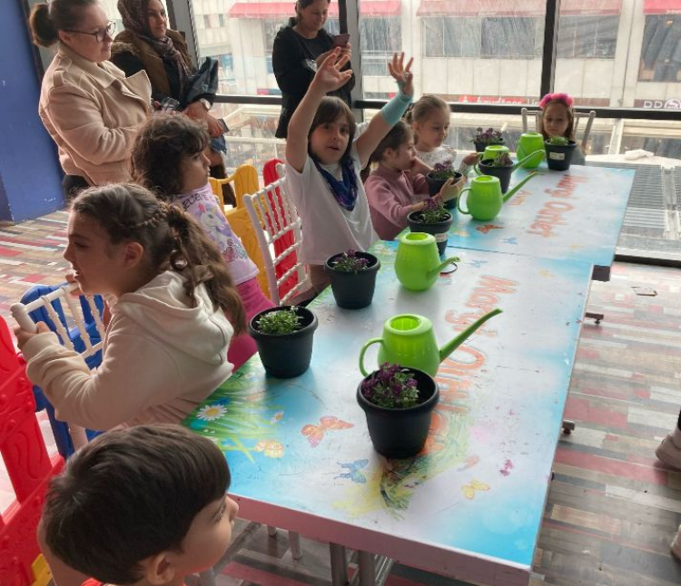 Atölyede minik katılımcılar, çiçek dikmenin inceliklerini öğrendi. Eğitmenler eşliğinde kendi saksılarına çiçek diken çocuklar, bitkilerin bakımı ve doğanın önemi hakkında bilgilendirildi.