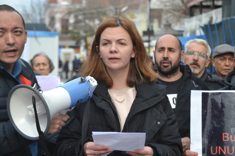 Basın açıklamasını, katılımcılar adına 22 Dost Eli Derneği Başkanı Tomris Gizem Çokgezer okudu.