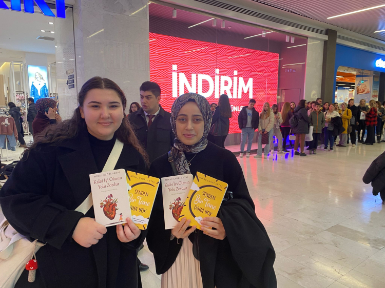 Sırada bekleyen okuyuculardan Melek Milet; “Şu anda ‘Kalbi İyi Olanın Yolu Zordur’ ve ‘Senden Bir Tane Daha Yok’ kitapları elimde, imzalatmak için arkadaşımla beraber kuyruktayız bekliyoruz. Kitaplarını çok seviyorum, çok etkilendiğim bölümler de oldu. Buraya geleceğinin haberini alınca da çok heyecanlandık. Yarım saattir sıradayız yaklaşık 1 saat daha bekleyeceğiz ama kesinlikle beklememize değecek. Buraya geldiği için çok mutluyuz. Onunla tanışıp kitabımı imzalatmak benim için unutulmaz bir anı olacak” diye konuştu.