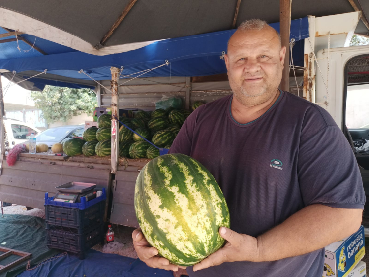 Karpuz fiyatlarının çok arttığını söyleyen ; "Ama vatandaşlarımız mağdur olmasın, karpuz yiyebilsin diye makul fiyata satıyoruz. Pahalı olduğu zaman vatandaş kaçıyor. Kilosuna göre fiyatlarımız tanesi 50 ile 100 TL arasında değişiyor. Bulgar turistler için sorun olmuyor. Leva, TL'den değerli olduğu için alabiliyorlar ama bizim vatandaşımız ucuza bakıyor. 700 TL'ye kiraz almaktansa 100 TL'ye karpuz almaları daha iyidir" dedi.