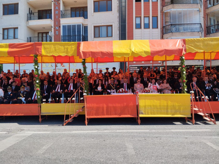 Törende, Edirne Valisi Yunus Sezer, Garnizon Komutanı Tuğgeneral Yüksel Kolcu, Belediye Başkanı Av. Filiz Gencan Akın halkın bayramını üstü açık tören aracından selamlayarak kutladı.