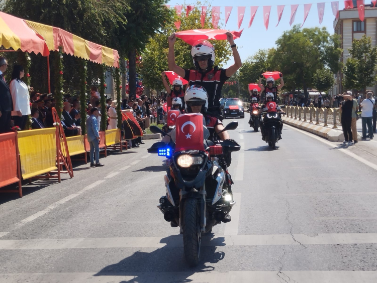 Üsteğmen Sağlamdenir’in konuşması sonrasında Cumhurbaşkanı Recep Tayyip Erdoğan’ın kutlama mesajı okundu. Kutlama mesajının okunmasının ardından tören birlikleri protokolü ve halkı selamlayan geçit törenini düzenledi. Geçit töreninde vatandaşlar da ellerindeki bayrakları sallayarak coşkuyla bayramı kutladılar.
