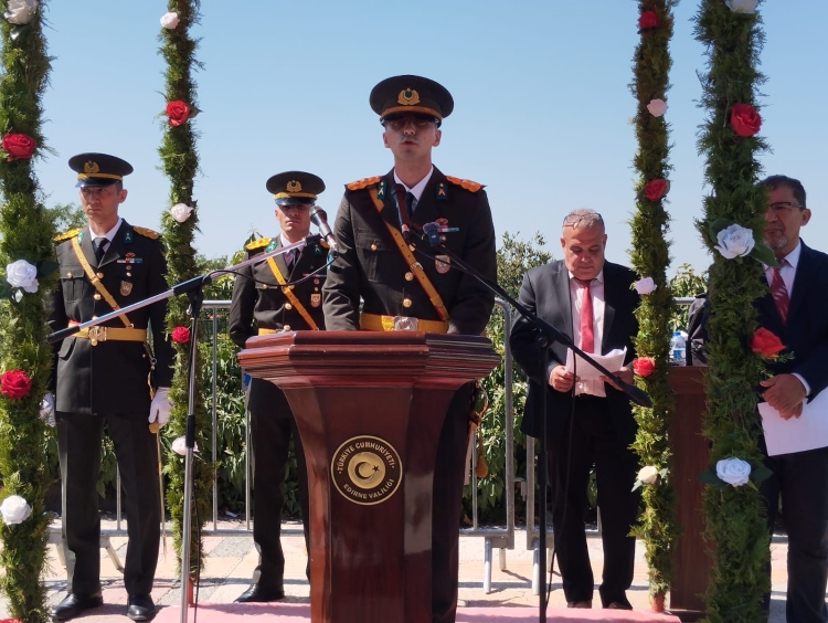 Edirne'de 30 Ağustos Zafer Bayramı'nın 103'üncü yılı Atatürk Bulvarı'nda düzenlenen törenle kutlandı. Törene, Edirne Valisi Yunus Sezer, Garnizon Komutanı Tuğgeneral Yüksel Kolcu, Edirne Belediye Başkanı Filiz Gencan Akın, AK Parti Edirne Milletvekili Fatma Aksal, CHP Edirne Milletvekili Ahmet Baran Yazgan, siyasi parti temsilcileri, kamu kurum ve kuruluş temsilcileri ile sivil toplum örgütlerinin temsilcileri ile vatandaşlar katıldı. .
