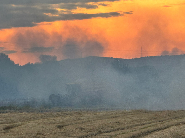 Edirne’nin Değirmenyeni köyü yakınlarında bir çeltik tarlasında anız yangını çıktı. Yangının dumanı yolda görüş mesafesini düşürdü.