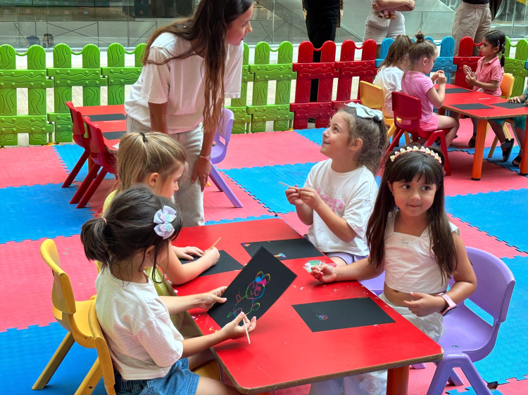 Etkinliğe katılan minikler, özel malzemelerle hazırlanan kâğıtlara çizim yaparken, çizdikleri siyah kâğıdın altından çıkan birbirinden renkli desenlerle hem şaşırdı hem de doyasıya eğlendi. Ailelerin de ilgiyle takip ettiği etkinlikte çocuklar, el becerilerini geliştirirken aynı zamanda renkli bir gün geçirdi.