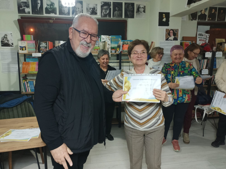 Şubat ayında haftada bir gün 2 saat olmak üzere toplam 5 haftada 10 saat olarak düzenlenen diksiyon atölyesinde başarılı olan 10 katılımcıya katılım belgeleri ve karneleri takdim edildi. Bostancıoğlu, katılımcılara belgelerini takdim ederken; Türkçeyi konuşurken ve yazarken doğru kullanmanın önemini vurguladı.