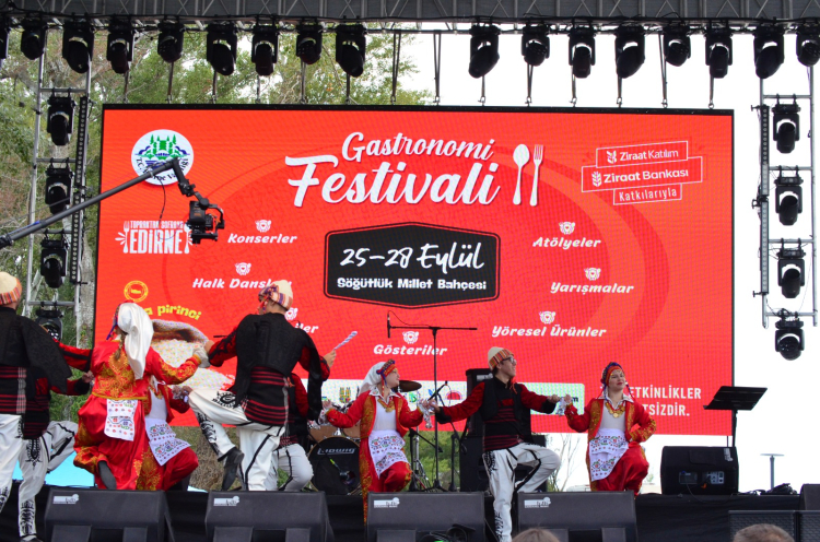 Edirne’de düzenlenen Yaşayan Miras ve Topraktan Sofraya Gastronomi Festivalleri kapsamında Dora Spor Kulübü halk oyunları gösterisi ve Güne Bakanlar Darbuka Topluluğu sahne performansıyla izleyenlere unutulmaz anlar yaşattı.