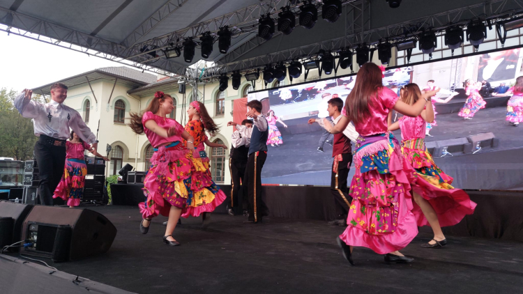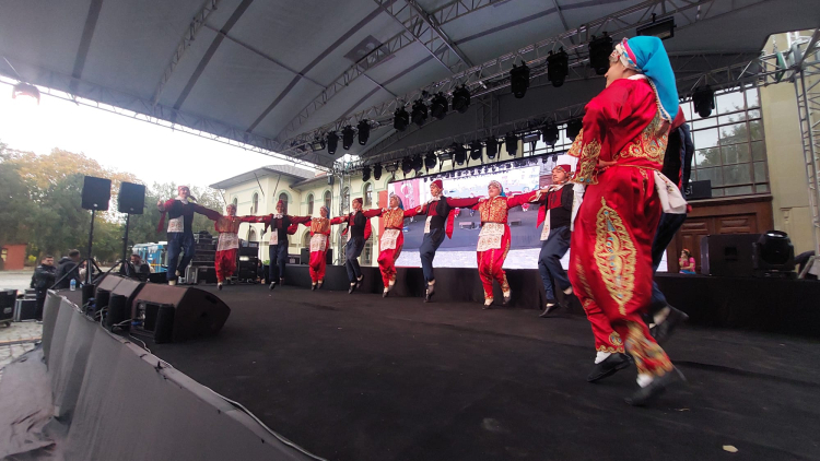 Edirne’de bu yıl ilk defa Karaağaç’taki tarihi tren garı bahçesinde düzenlenen Topraktan Sofraya Edirne Gastronomi Festivali’nin 3’üncü gününde, Edirne Lisesi Halk Oyunları Ekibi ve Edirne Belediyesi Roman Dans Grubu sahne aldı.