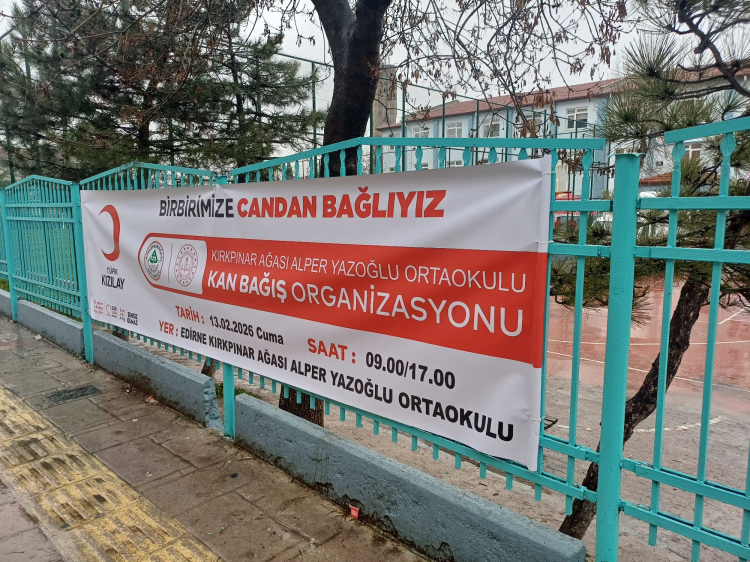 Edirne'de bugün Kırkpınar Ağası Alper Yazğlu Ortaokulu'nda, “Bağışlanan bir ünite kan, 3 kişinin hayatını kurtarabilir” sloganıyla düzenlenen kampanyada, öğrenciler kan bağışının önemine dikkat çekti. Etkinlik kapsamında kan bağışçısı getiren tüm öğrencilere top hediye edileceği duyuruldu.