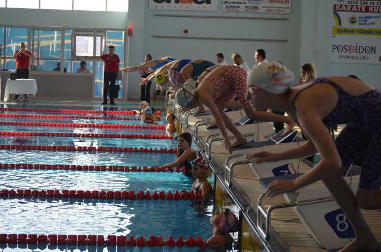 Edirne’de Olimpik Yüzme Havuzunda bugün 9-10 Yaş ve 11-12 Yaş Ulusal Gelişim Projesi 2. İl Vize ve Açık Yaş İl Test Yüzme karşılaşmaları başladı.