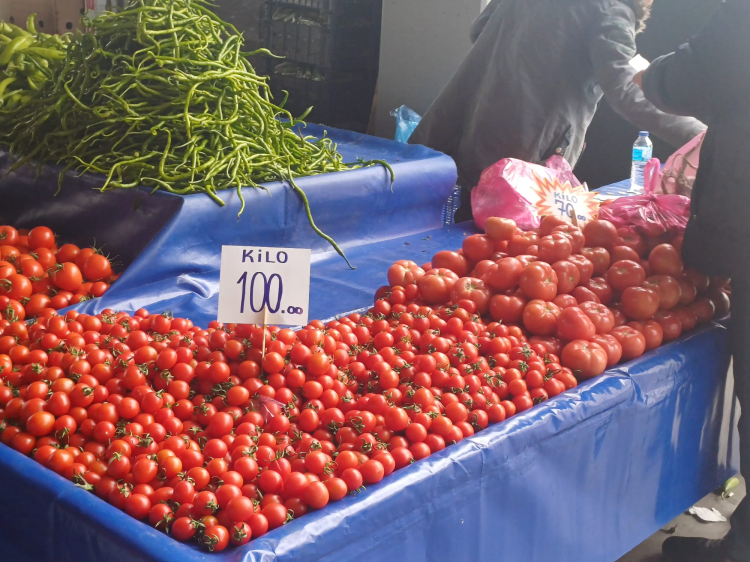 Her vatandaşın dolabında mutlaka bulunan domatesin kilogramı, pazarda 50 lira ile 100 lira arasında değişti. Ayrıca kabağın kilogramı 20 liradan satışa sunulurken, kıl acı biberin kilogramı 120 liradan satıldı.