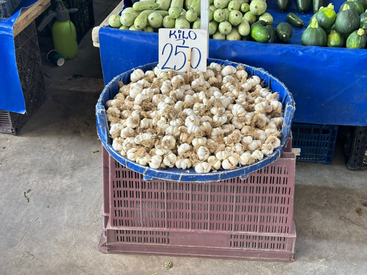 Edirne’de 1. Murat Semt Pazarı’nda sarımsak, artan fiyatlar nedeniyle artık demet halinde satışa sunuluyor. Kilosu 250 TL’yi bulan sarımsağın, pazarda kilogram yerine küçük demetler halinde tezgâhlara çıkması dikkat çekti.