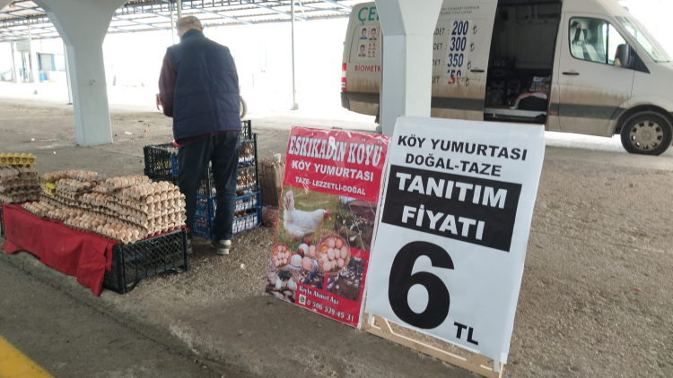 Edirne’de kurulan Pazartesi Pazarı’nda doğal ortamda beslenen tavuklardan üretilen yumurtalar 6 liralık satış fiyatıyla dikkat çekiyor.